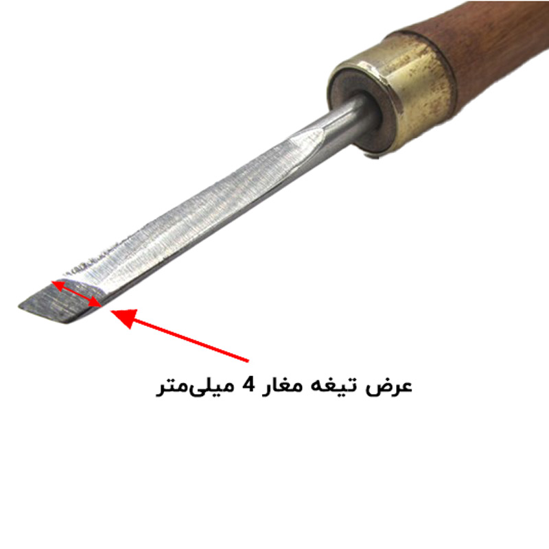 همان طور که در قسمت های قبل اشاره کردیم به کمک مغار سر کج می توان سطح کار را پرداخت و مسطح کرد در واقع این مدل مغار از مهمترین ابزار منبت و معرق کاری به شمار میآید. مشخصات فنی این مدل مغار تخت سر کج ظریف کاری به شرح زیر میباشد: