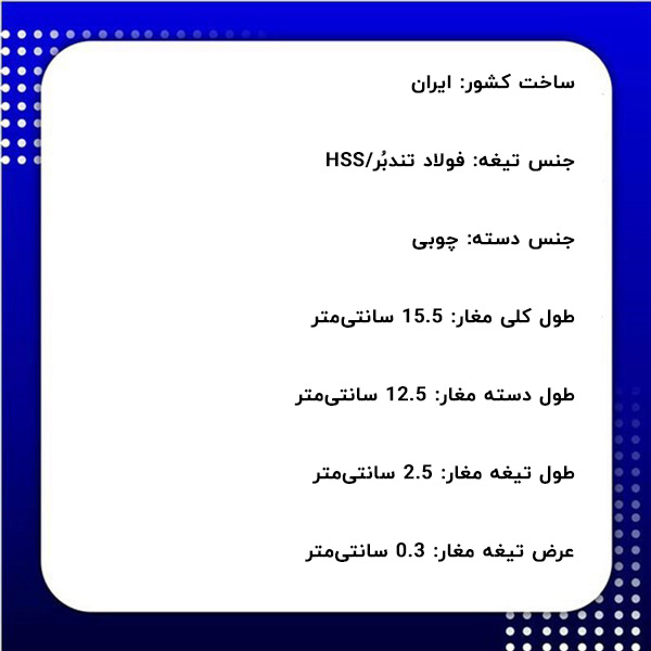 - عرض تیغه مغار: 0.3 سانتیمتر