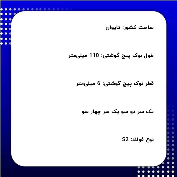 - قطر نوک پیچ گوشتی: 6 میلیمتر