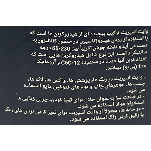 وایت اسپریت بر پایه ترپانتین هست و موم عسل رو باید در خودش حل کنه . ممنون میشم دوستانی که این برند رو تهیه کردن اعلام بفرمایند که اینگه هست یا خیر