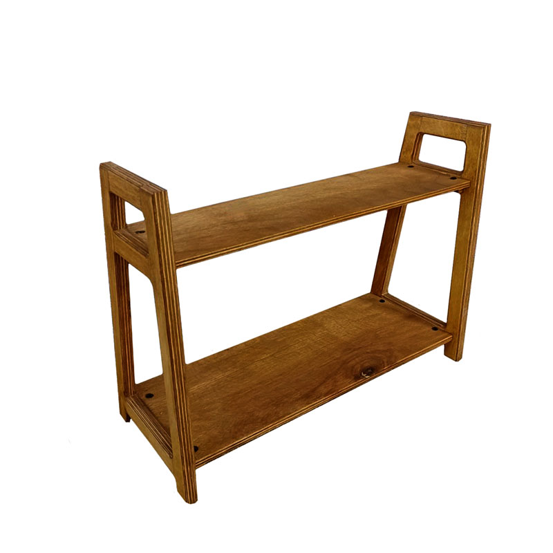 همان طور که در بخش قبل ذکر شد از ظروف و لوازم چوبی جهت پذیرایی و دکور در منازل، رستوران، کافه و محیط کار استفاده میشود که استند پاسماوری دو طبقه یک نمونه از این ظروف است. استند دکوری دو طبقه از جنس چوب پلای وود روسی ضد آب درجه یک به صورت مستطیل دو طبقه تولید و با روغن گیاهی پوشش دهی شده است. برای تمیز کردن استند در صورتی که آب بر روی کار ریخته شود دچار آسیب میشود و باید بلافاصله با پارچه نرم خشک شود. از این مدل استند برا چیدمان و مرتب کردن پاسماری، شیشه ادویه، قهوه و .... استفاده میکنند.