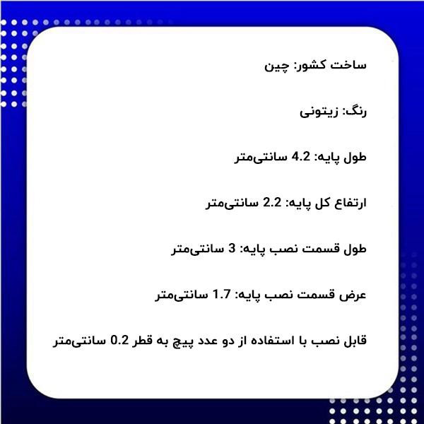 - عرض قسمت نصب پایه: 1.7 سانتیمتر