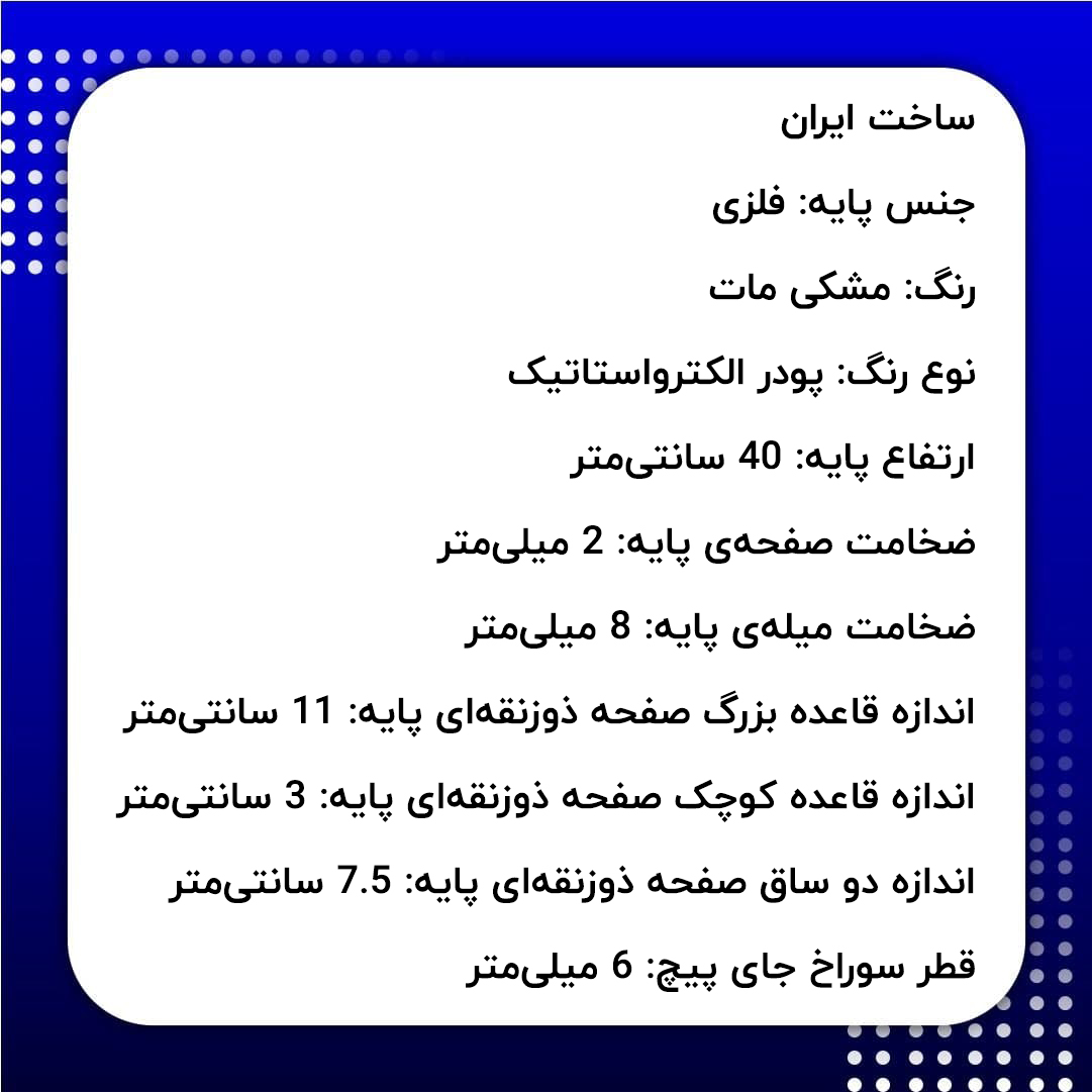 - ضخامت میلهی پایه: 8 میلیمتر