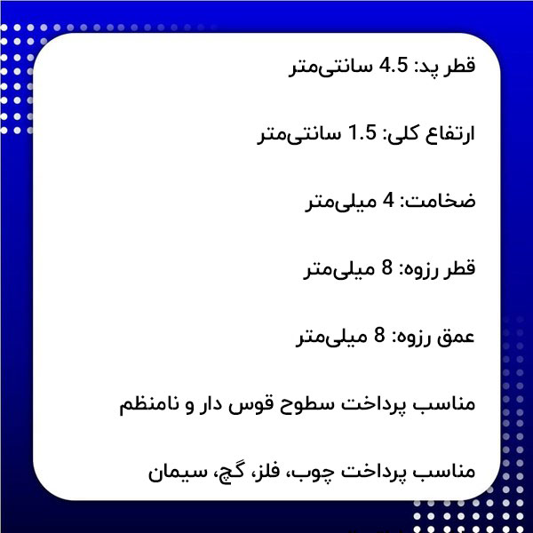 مشخصات فنی پد سنباده منعطف به شرح زیر است: