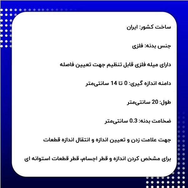 - دارای میله فلزی قابل تنظیم جهت تعیین فاصله