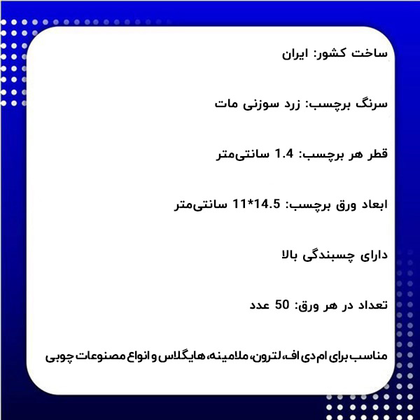 - ابعاد ورق برچسب: 14.5*11 سانتیمتر