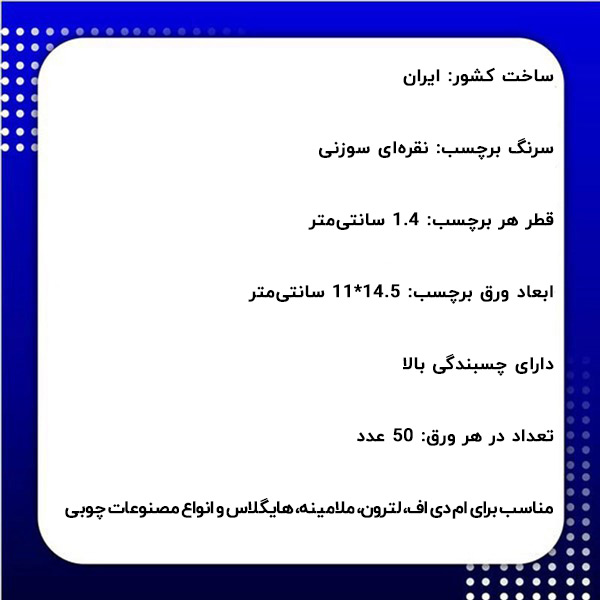 - ابعاد ورق برچسب: 14.5*11 سانتیمتر