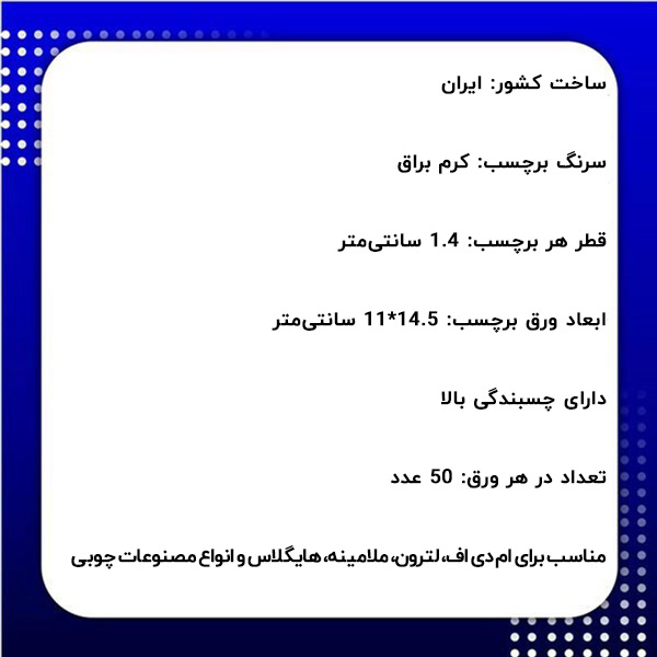 - ابعاد ورق برچسب: 14.5*11 سانتیمتر