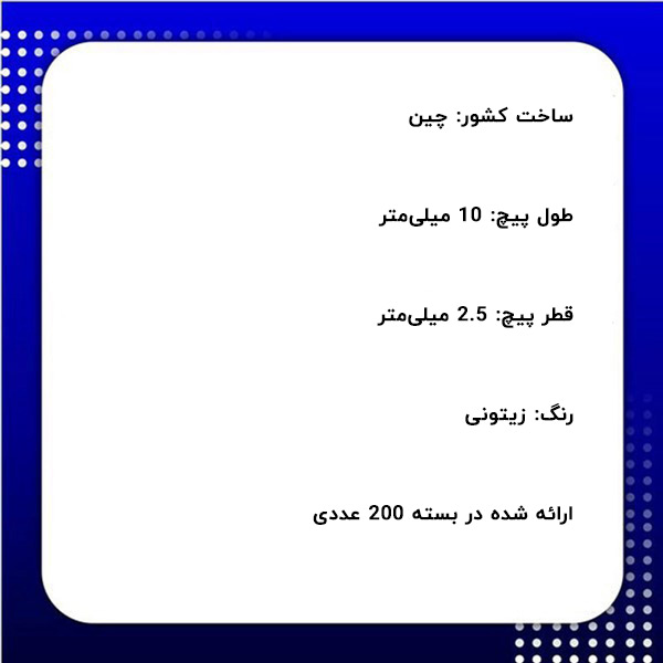 پیچ از جمله ملزومات کاربردی و ضروری است که در کارگاههای نجاری، کیف ابزار و غیره وجود دارد. پیچ چفت آنتیک یکی از انواع پیچ مخصوص اتصال یراقآلات آنتیک و کوچک می باشد که در رنگ زیتونی ارائه شده است. پیچ آنتیک با قطر 2.5 و طول 10 میلیمتر مناسب برای نصب انواع چفت آنتیک بر روی جعبههای تزیینی کوچک همچون جعبه جواهرات، تخته نرد و غیره مورد استفاده قرار میگیرد. در ادامه متن توضیحات بیشتری در رابطه با پیچ آنتیک زیتونی بیان خواهد شد.