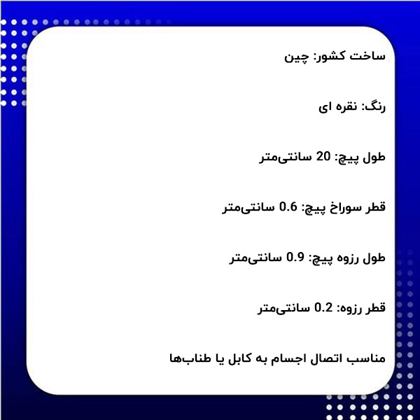 - طول پیچ: 20 سانتیمتر