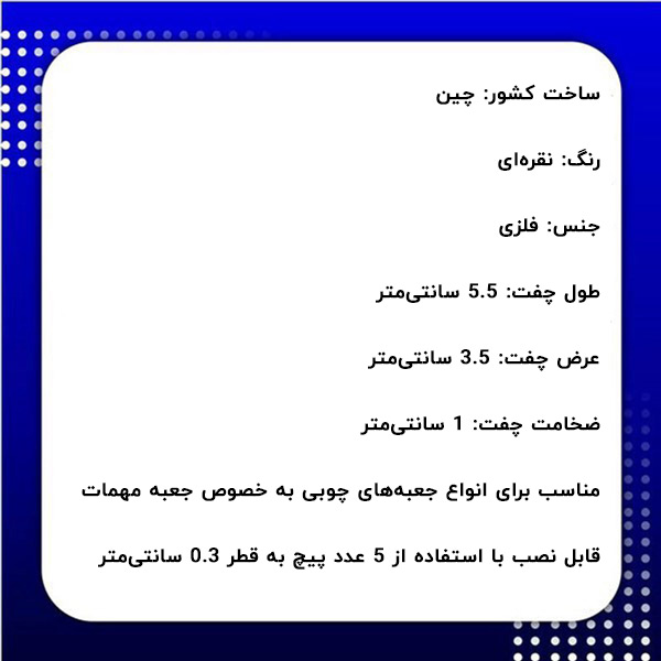 ضخامت چفت: 1 سانتیمتر - مناسب برای انواع جعبههای چوبی به خصوص جعبه مهمات