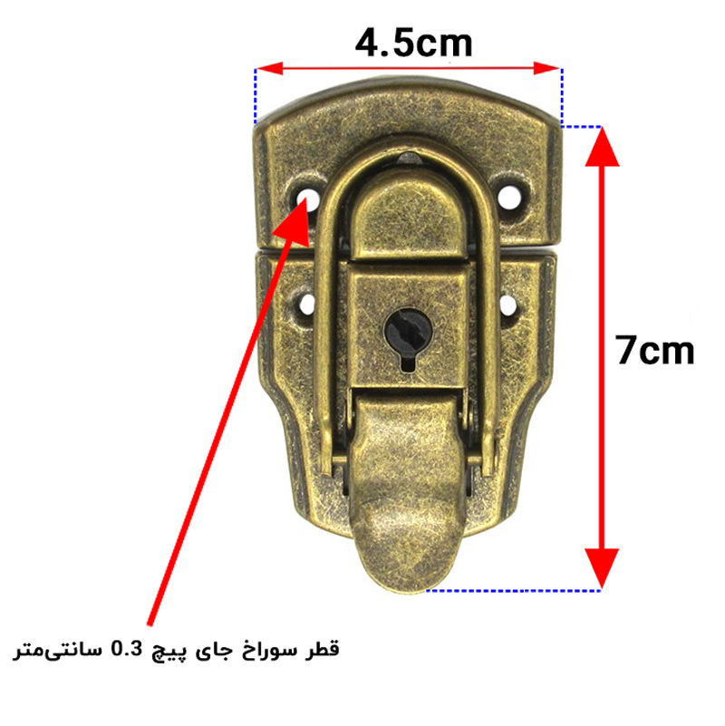 ضخامت چفت: 1.5 سانتیمتر - مناسب برای انواع جعبههای چوبی به خصوص جعبه مهمات