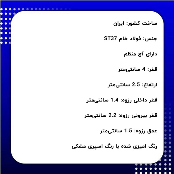 - قطر بیرونی رزوه: 2.2 سانتیمتر