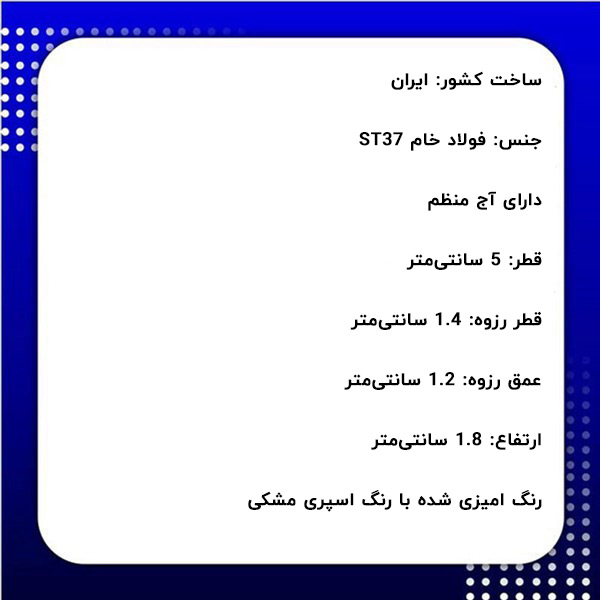 - عمق رزوه: 1.2 سانتیمتر