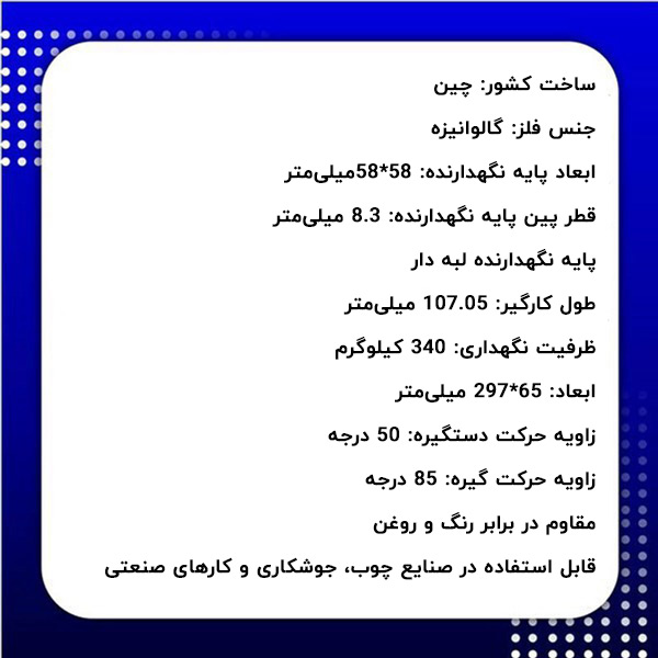 - ابعاد پایه نگهدارنده: 58*58میلیمتر