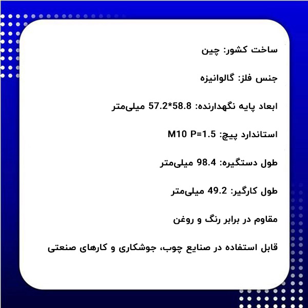 - استاندارد پیچ: M10 P=1.5