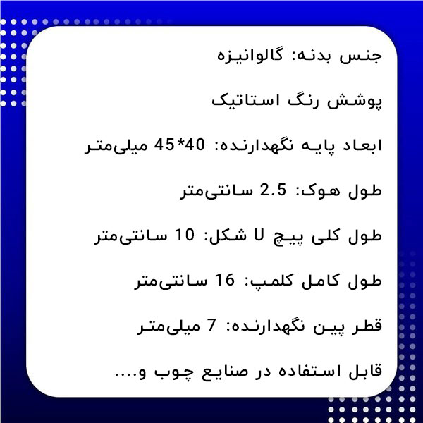 - طول کلی پیچ U شکل: 10 سانتیمتر