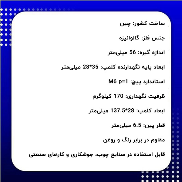 - ابعاد کلمپ: 28*137.5 میلیمتر