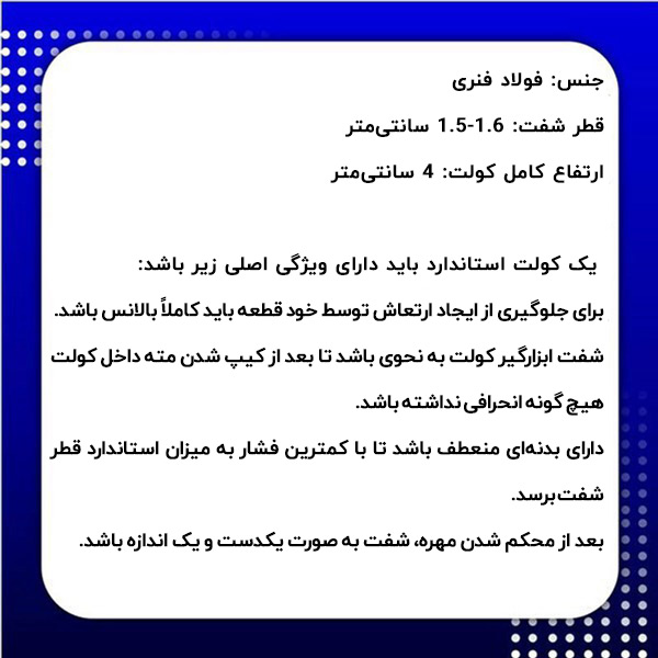 یک کولت استاندارد باید دارای ویژگی اصلی زیر باشد: