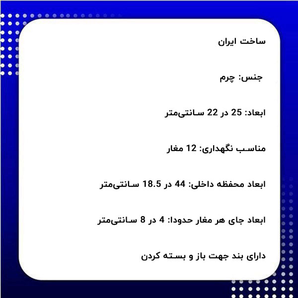 - ابعاد محفظه داخلی: 44 در 18.5 سانتیمتر