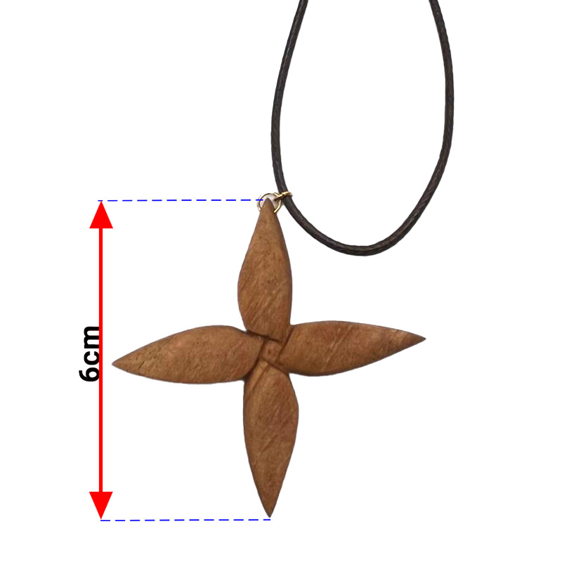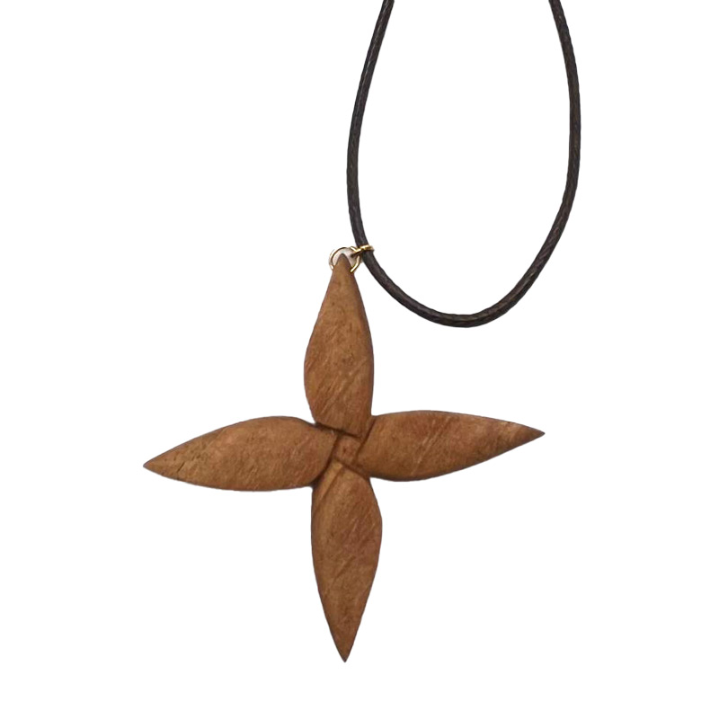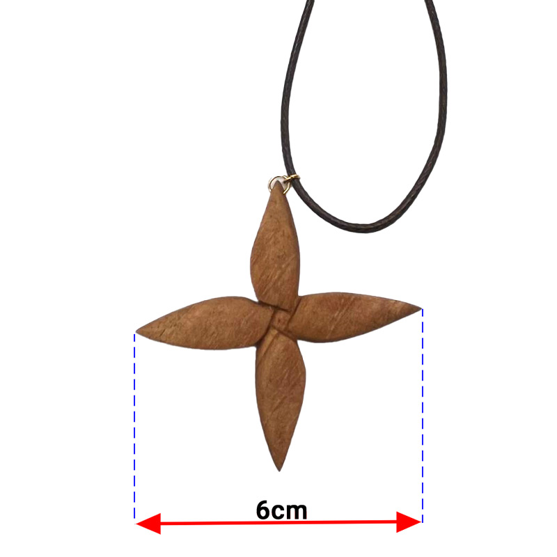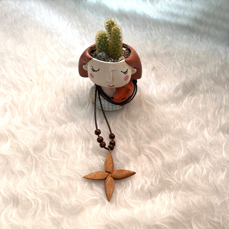گردنبند چوب گردو طرح گل چهار پر