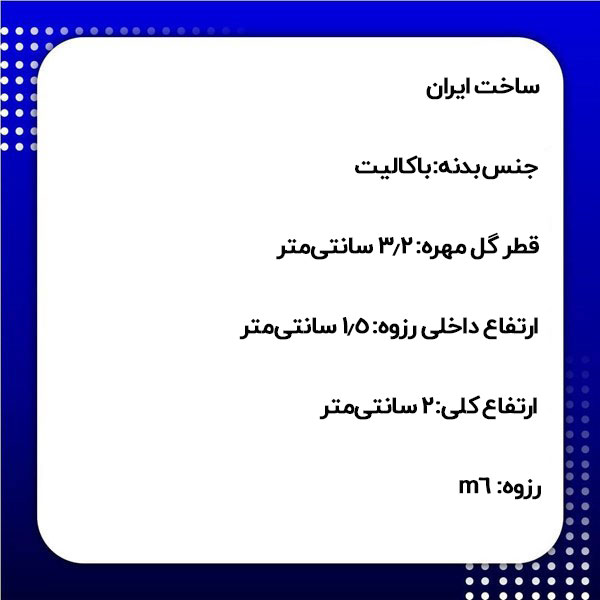 - ارتفاع داخلی رزوه: 1.5 سانتیمتر