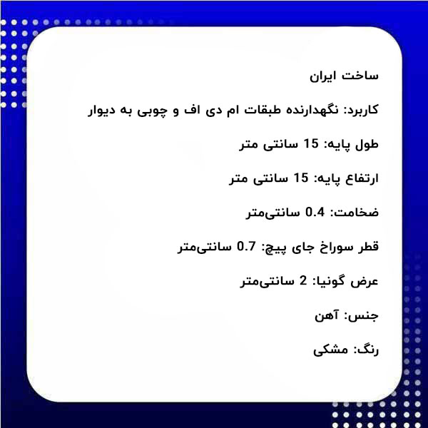 - کاربرد: نگهدارنده طبقات ام دی اف و چوبی به دیوار