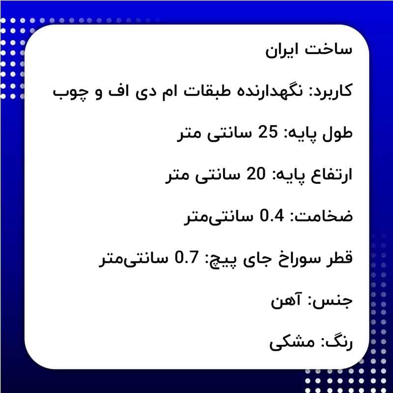 - کاربرد: نگهدارنده طبقات ام دی اف و چوبی به دیوار