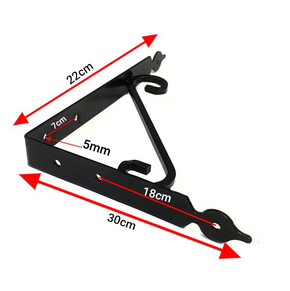 همانطور که گفته شد، گونیا فرفورژه به شما این امکان را میدهد که طبقات را به صورت کاملا محکم و ایمن به دیوار وصل کنید و از افتادن آنها جلوگیری کنید. طراحی فرفورژه این گونیا به آن زیبایی خاصی میبخشد و میتواند دکوراسیون داخلی شما را زیبا کند و این گونیا در دو رنگ مشکی و سفید موجود میباشد که شما بنا به طراحی دکوراسیونتان می توانید رنگ دلخواهتان را انتخاب کنید. همانطور که گفته شد با نصب این مدل گونیا نگهدارنده طبقه می توانید به راحتی انواع طبقات چوبی و ام دی اف را به دیوار نصب نمایید. این مدل گونیا نگهدارنده طبقه دارای 6 عدد سوراخ جای پیچ می باشد که با استفاده از دو پیچ ام دی اف و یا پیچ رولپلاک به دیوار وصل می شود و با دو پیچ دیگر صفحه ام دی اف بر روی آن قرار می گیرد. قابل ذکر است که هر جفت از گونیا تزئینی طبقه می تواند صفحه ای را با بار 40 تا 50 کیلوگرم نگه دارد.
