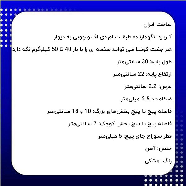 - کاربرد: نگهدارنده طبقات ام دی اف و چوبی به دیوار