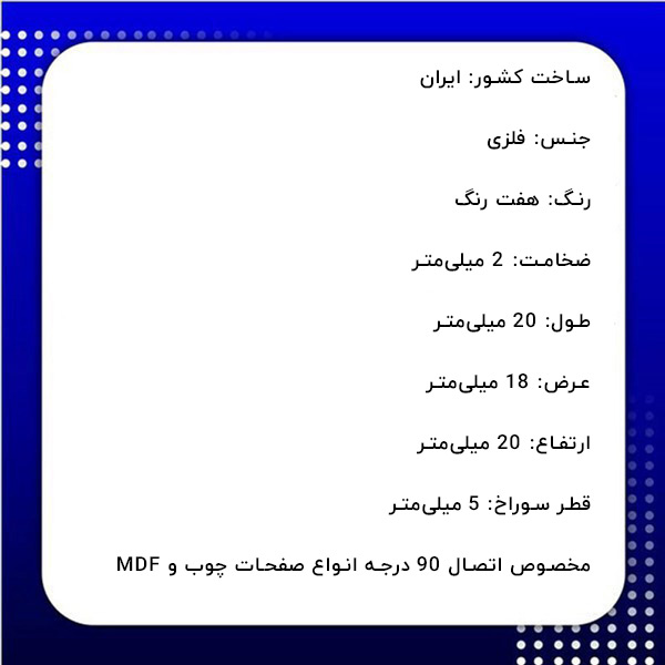 - مخصوص اتصال 90 درجه انواع صفحات چوب و MDF